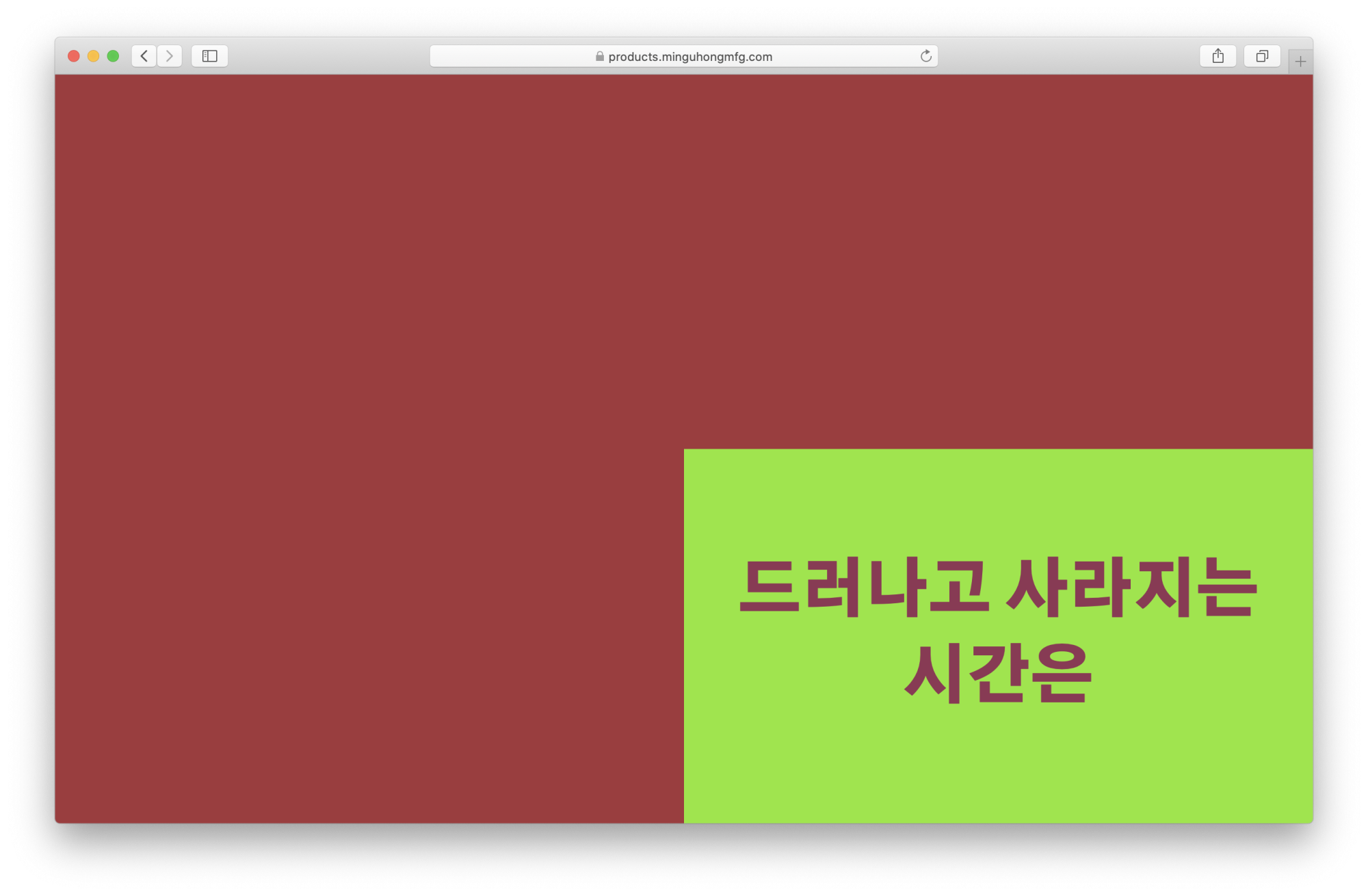 내용은 크게 다르지 않지만, 이번에는 새로운 질서를 부여해 편지 자체를 웹사이트로 치환하면서 다소 유난스러운 장치를 몇 가지 마련했다. 요컨대 글자 색과 배경 색은 무작위로 달라지고(즉, 열람할 때마다 어딘가 새롭고), 글자가 드러나고 사라지는 시간은 구절의 길이에 비례한다. 본문에 딸린 부연은 본문의 25퍼센트 크기로 드러나는 한편, 구절의 성격에 따라 재생되는 드럼과 하이햇의 질서는 심심한, 이따금 불온한 배경 음악을 만들어낸다. “이는 참고로 말씀드리는 바일 뿐 두 분의 문해력을 의심하려는 의도가 아님을 밝힙니다.”