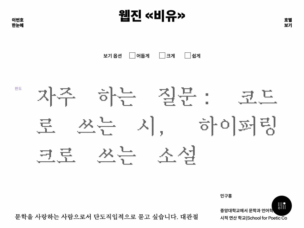 자주 하는 질문: 코드로 쓰는 시, 하이퍼링크로 쓰는 소설
