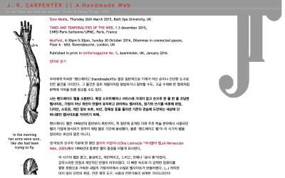 나는 핸드메이드 웹을 소환한다. 몸, 즉 신체성에 주목하기 위해.