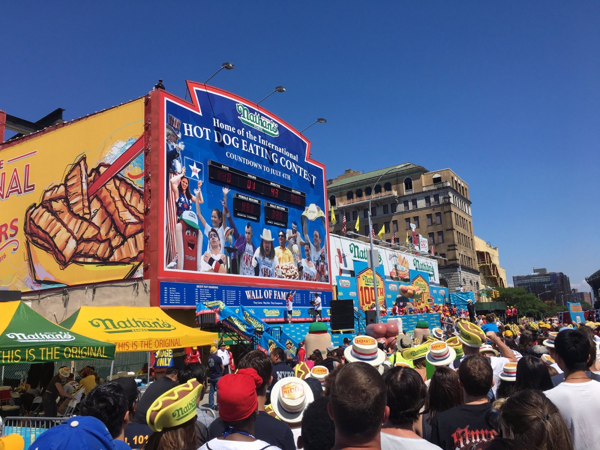 브루클린 남쪽 끝에 있는 코니 아일랜드는 이름에서 드러나듯 본디 대서양에 저리한 섬이었다. 1800년대까지만 해도 부유층을 위한 곳이었지만, 1900년대 초 철도가 놓이고 호텔, 놀이기구 등이 들어서면서 뉴욕의 대표적 피서지 겸 유원지가 됐다. 여기에 스페인 갈리시아(Galicia) 지방 출신 네이선 한트베르커(Nathan Handwerker)가 터를 잡고 아내와 함께 핫도그 가게 네이선 페이머스의 문을 연 것도 그 무렵, 1916년이었다.