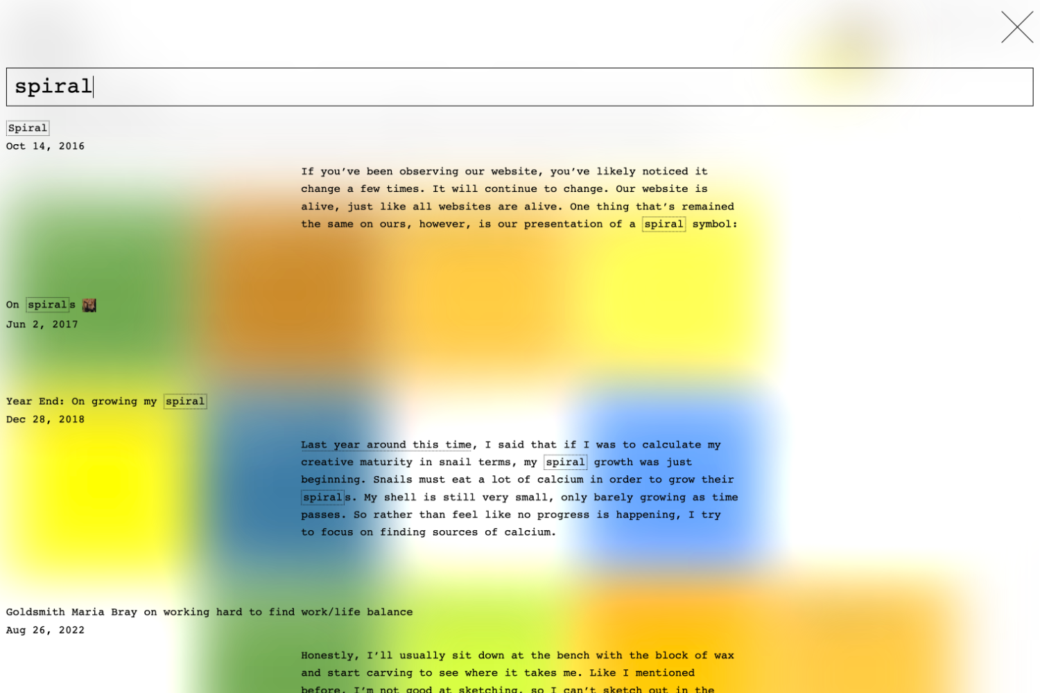 이따금 강연에서 특정 프로젝트, 즉 새로움이 탄생하기도 해요. 예컨대 2018년 뉴욕의 시적 연산 학교(School for Poetic Computation, SFPC)에서 ‘피어 투 피어 웹’(Peer to Peer Web)에 관한 강연을 요청받았어요. 당시 저는 (지금은 사라졌지만) ‘비커 브라우저’(Beaker Browser)라는 P2P 기반 웹 브라우저에 대한 기대가 컸어요. 한 달 정도 강연을 준비하면서 저는 비커 브라우저 전용 블로그를 운영하고, 강연에서 그 결과를 공유했죠. 그렇게 강연에서 새로움이 만들어졌고요.