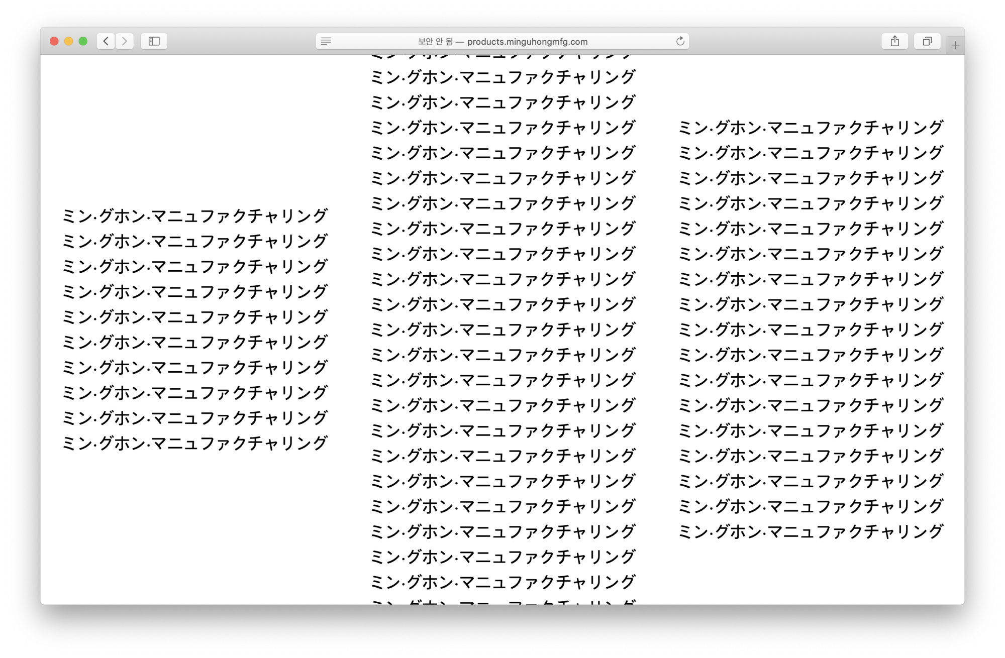 - 가나: ‘ミン·グホン·マニュファクチャリング’(원칙), ‘ミングマ’(허용), ‘ミンマニ’(허용)