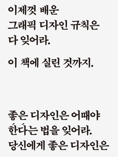 이 책은 느슨하고 어수선할뿐더러 이따금 엉망입니다. 그래픽 디자인에 관한 그저 한 가지 태도일 뿐이죠. 이는 독자 또한 자신의 태도를 마련해야 한다는 점을 보여 주려는 의도이자 그 자체로 책이 주장하는 바이기도 해요.